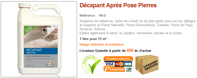 Décapant après pose pour les dallages et supports en Pierre Naturelle, Pierre Reconstituée, Marbre, Travertin, Pierre de Pays, Margelle de piscine, Pavé autobloquant…