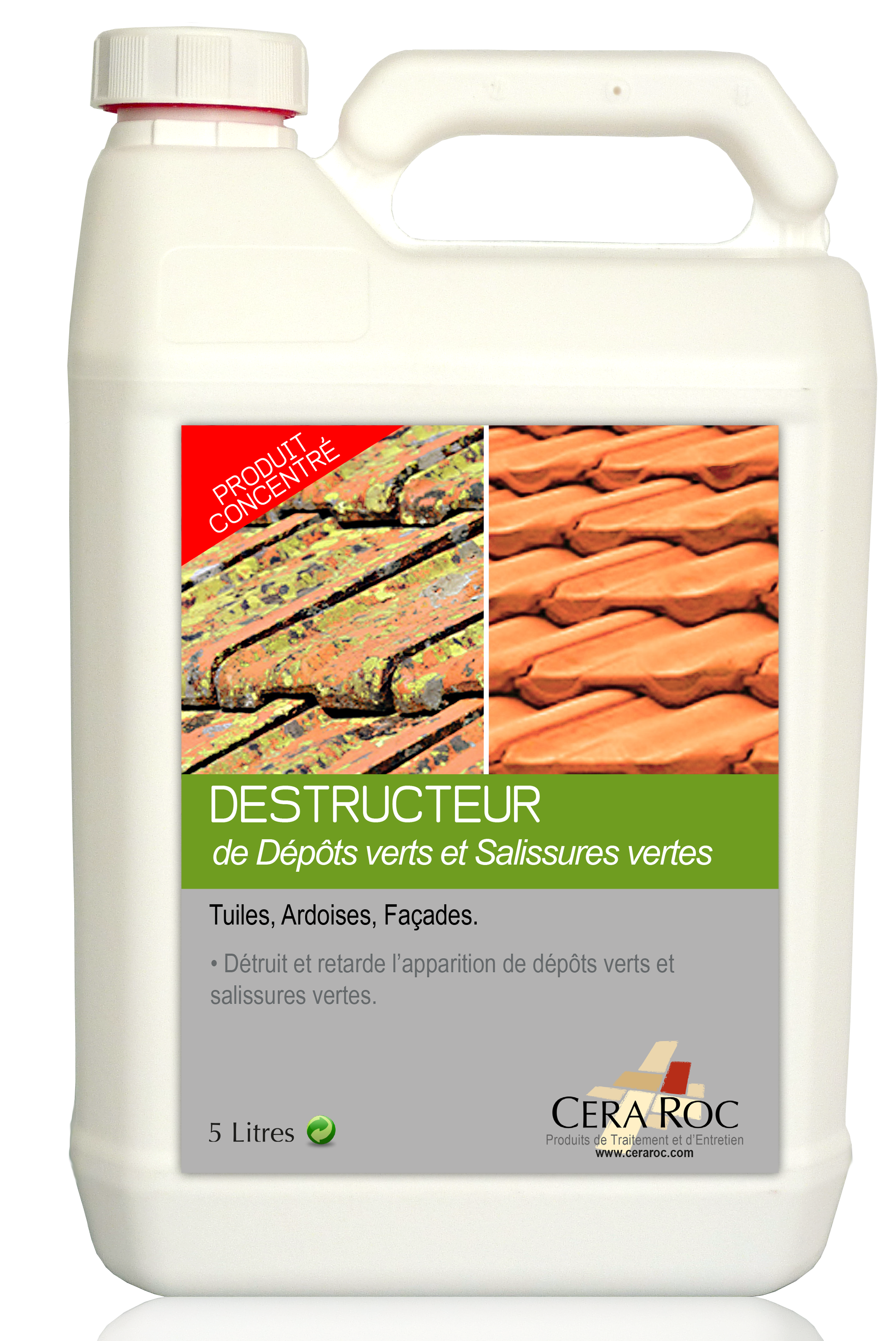 Détruit et évite l’apparition des mousses, lichens, champignons sur tous types de Toiture, Façade, Terrasse, Aménagement extérieurs… (Tuile, Ardoise, Fibrociment,  Pierre Naturelle, Pierre Reconstituée, Parement, Terre Cuite Grès).