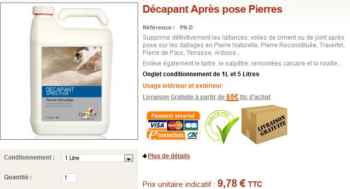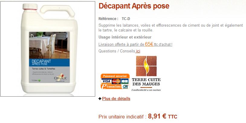 Appliquer le Décapant Après pose pure sur la Terre Cuite & Tomette afin de supprimer les traces blanches.