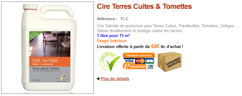 Ce sont des anciennes méthodes d’entretien qui encrassent plus qu’elles nettoient, si vous appliquez un corps gras sur une matière poreuse, toutes les poussières vont se coller dessus et encrasser plus rapidement votre carrelage. Utiliser notre Savon liquide spécialement conçu pour l’entretien des Terres Cuites & Tomettes