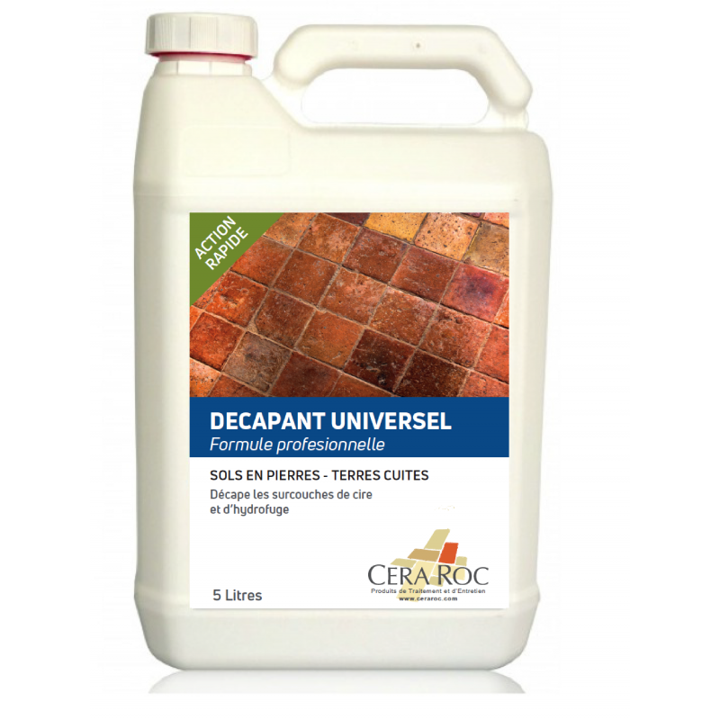 Décapant professionnel conçu pour dissoudre efficacement les surcouches de cire, vernis, hydrofuge et peinture sur pierre, terre cuite et tomette.