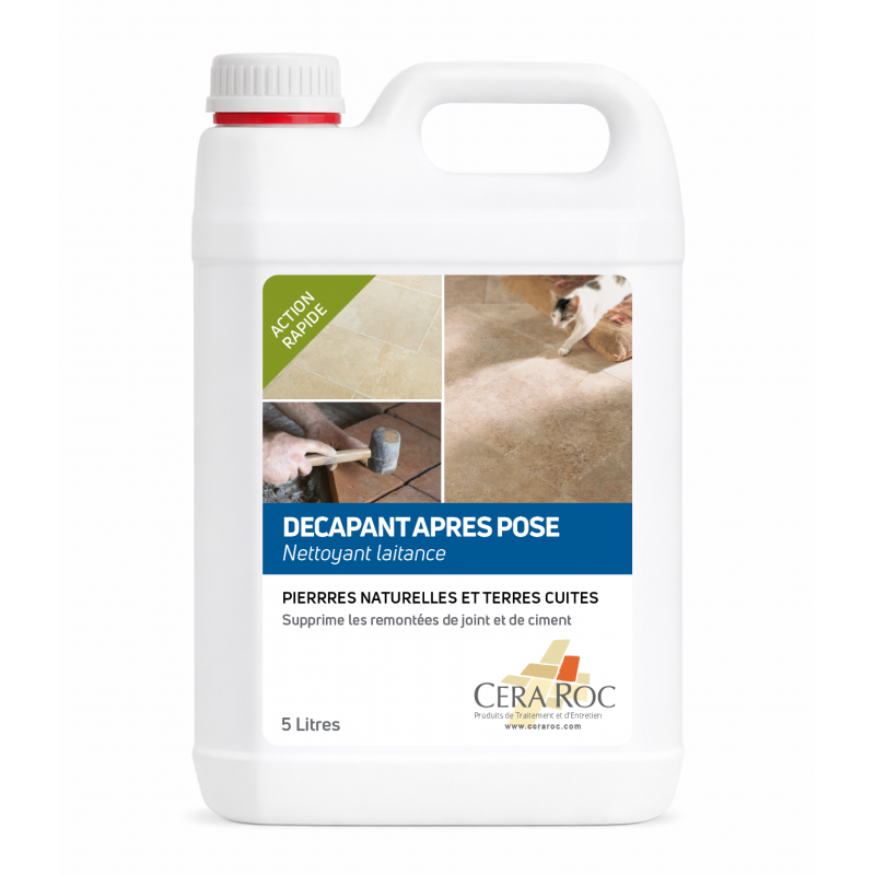 Décapant après pose pour Terres Cuites, Briques, Tomettes, Pierres Naturelles, Zelliges, Margelles de piscine, Pavés autobloquants, Plaquettes de parement, Bejmat.