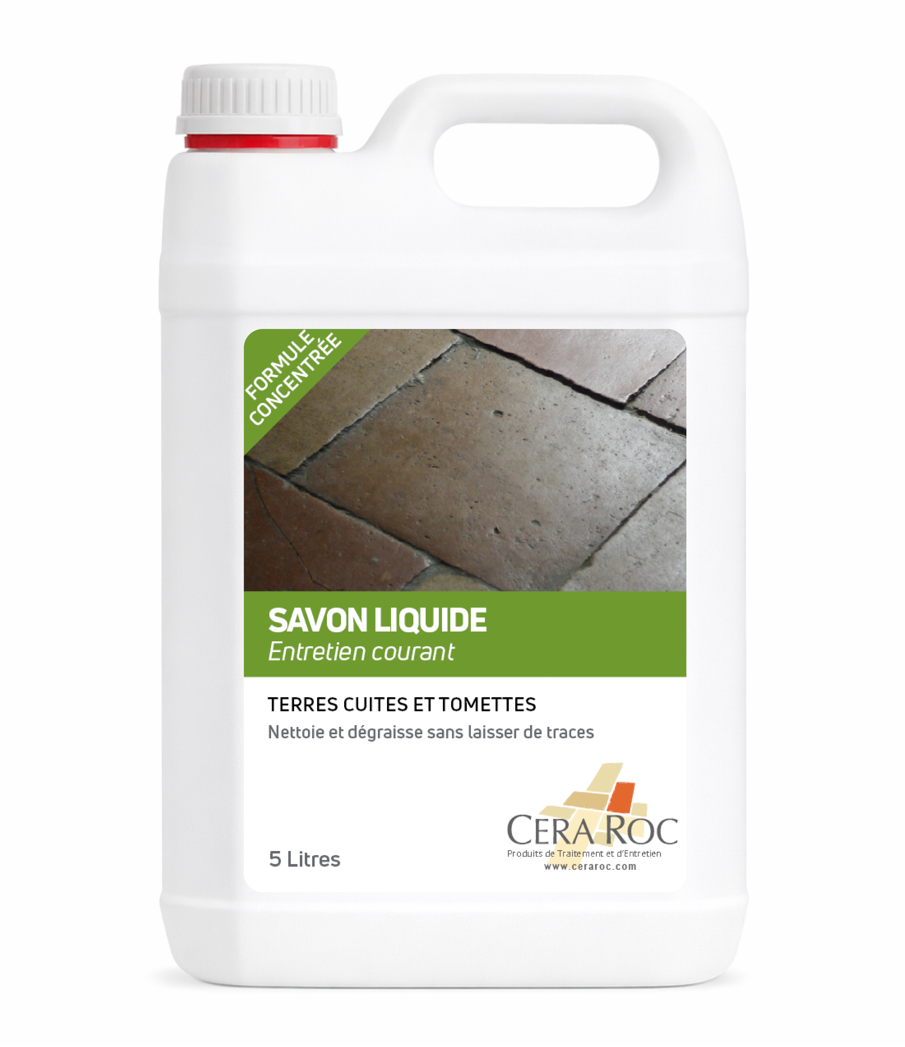 Utiliser notre Savon liquide spécialement conçu pour l’entretien des Terres Cuites & Tomettes