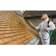 Il vous faut une échelle pour atteindre les chéneaux, puis une échelle à crochets pour vous déplacer sur le toit. Le produit s’applique à l’aide d’un pulvérisateur manuel ou électrique.